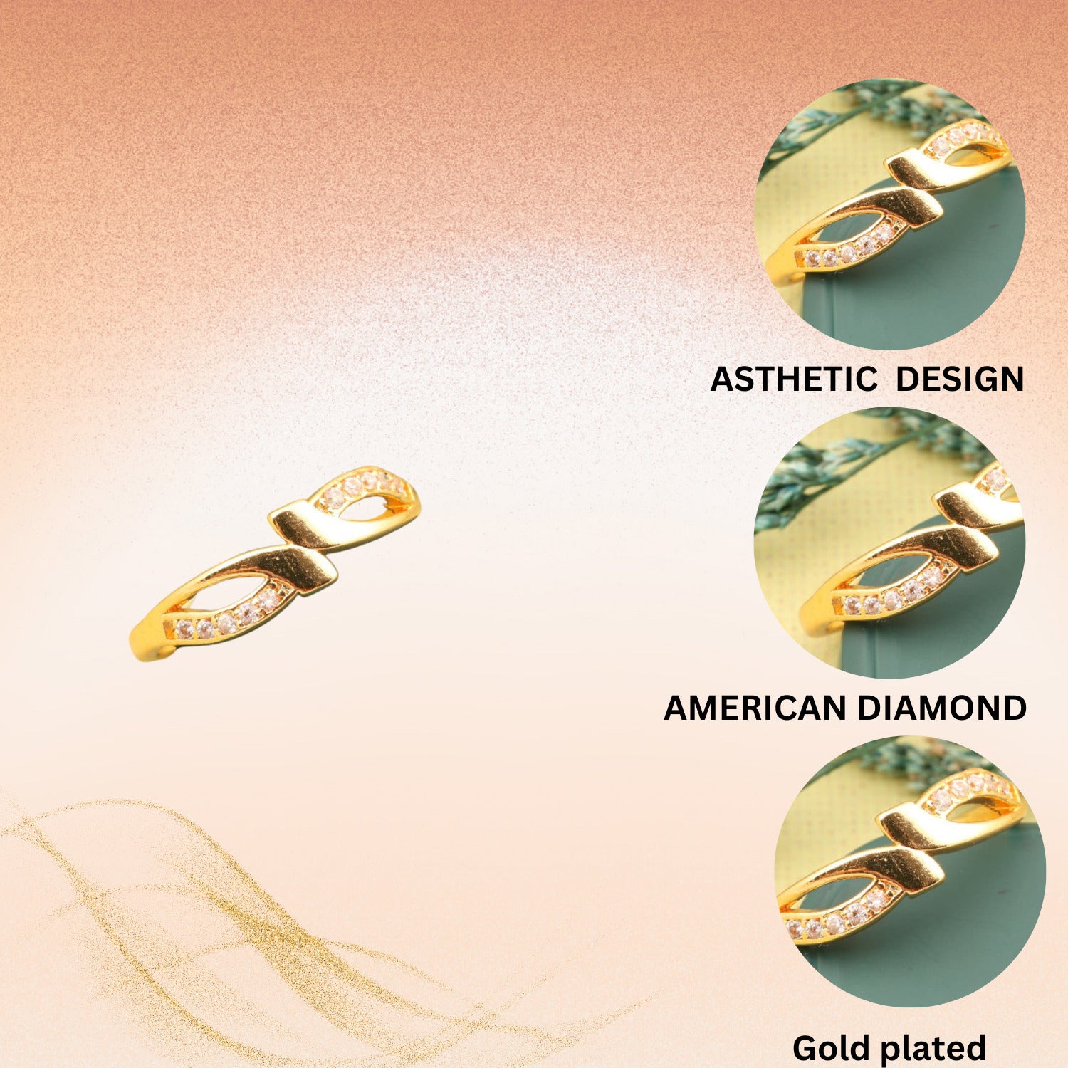 "Gold Plated Adjustable Floral Accent Ring with CZ Stones – Stylish Jewelry for Women"